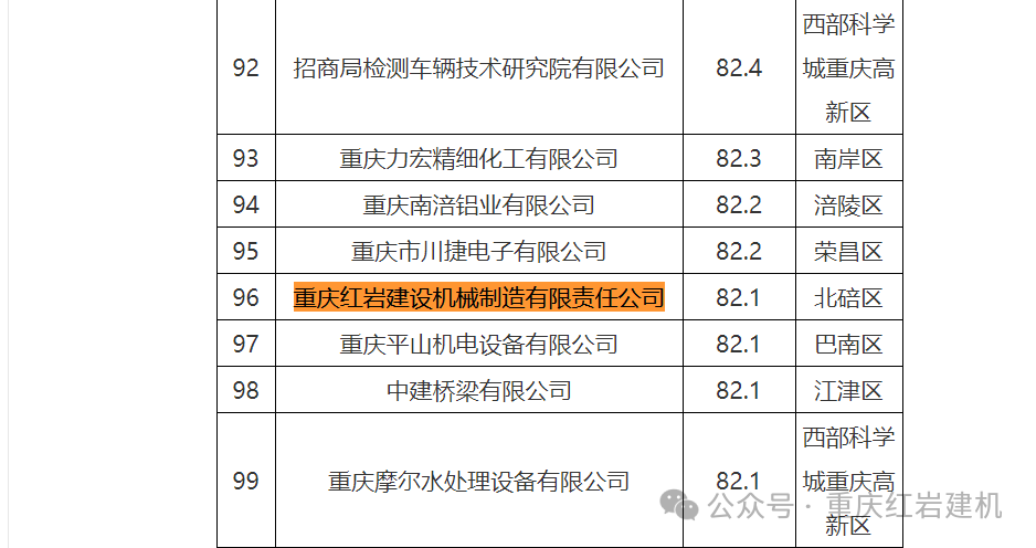 11月15日,重慶市經(jīng)濟和信息化委員會發(fā)布《重慶市企業(yè)技術(shù)中心2022—2023年度評價結(jié)果》,其中6家企業(yè)評分90分以上為優(yōu)秀;159家企業(yè)評分80分以上為良好;717家企業(yè)評分在65分以上為合格;129家企業(yè)評分在60-65分之間為基本合格;59家企業(yè)在60分以下為不合格。我公司獲得82.1評分為良好,序號排名96。